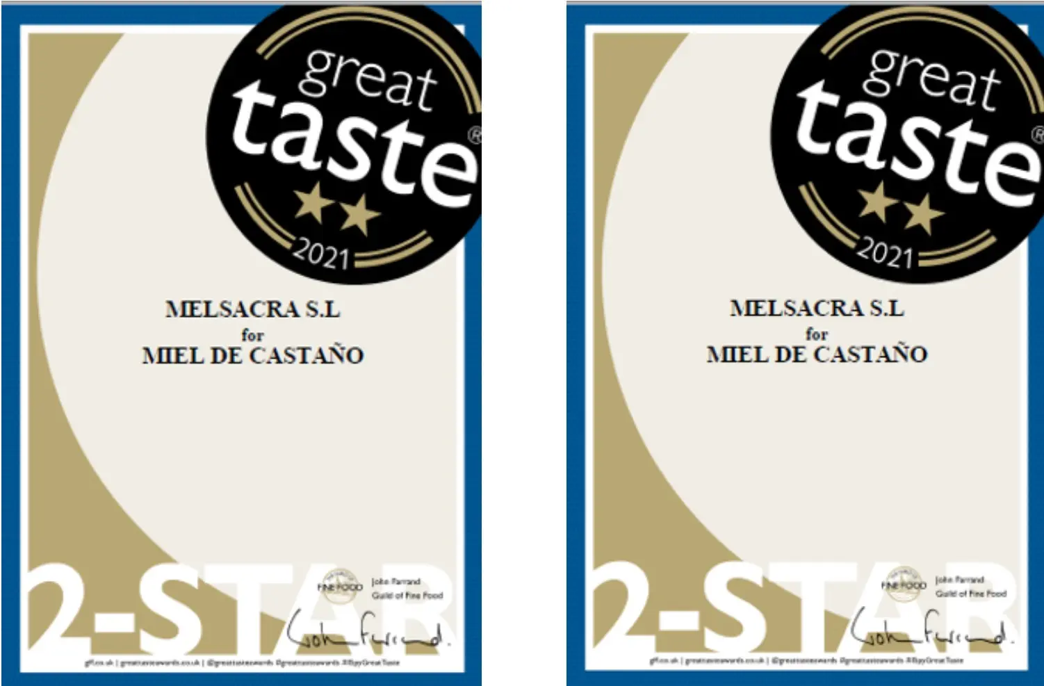En nuestra primera participación, edición 2020, ya recibimos la prestigiosa etiqueta Great Taste con 1 estrella para la variedad Melsacra Selecta, valorándola como un producto delicioso y señalando esta miel entre una de las más destacadas, como así lo expresó el respetable jurado: